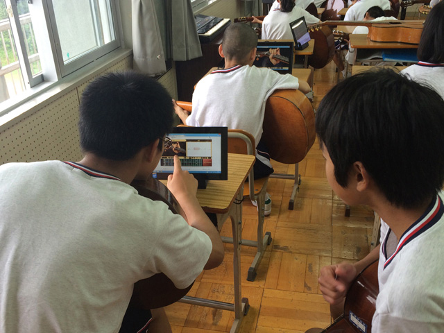 2015年の夏、1年生のクラスでICTを活用したギターの授業をされた山下先生は、デジタル教材や遠隔授業に手ごたえを...