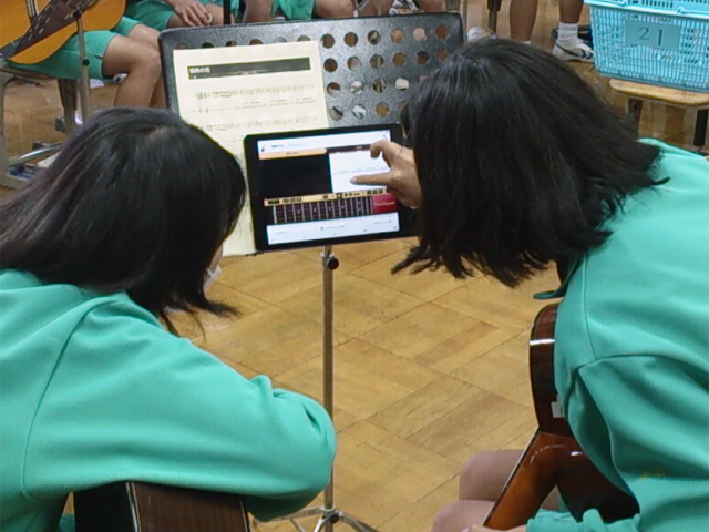 浜松市立湖東中学校で、デジタル教材を利用したギターの授業を実施しました。 音楽授業のテーマの1つでもある「器楽...