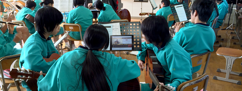 デジタル教材を活用し、きめ細やかで生徒のやる気を喚起するギター演奏指導を――。ヤマハがご提案した、新しい音楽授業の形です。