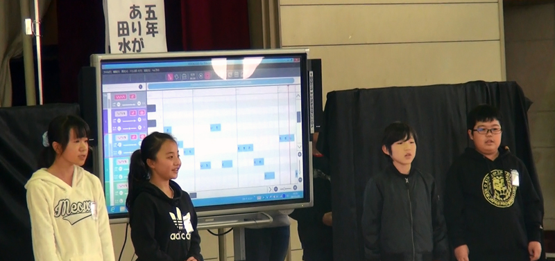 2018年3月に141年という長い歴史に幕を降ろす、つくば市立百合ヶ丘学園田水山小学校。2月に行われる閉校お別れ会で、学校の歴史や感謝の気持ちを歌に乗せて歌いたいという柴沼先生、そして5年生の児童たちの思いを形にするため、ボーカロイド教育版を用いてオリジナルソングづくりを行いました。