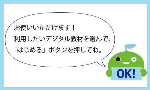 下記の2種類のアイコンから起動したい教材を選び、「はじめる」ボタンを押すと起動します。